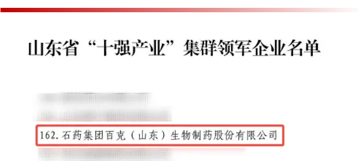 石藥百克獲評山東省“十強(qiáng)產(chǎn)業(yè)”集群領(lǐng)軍企業(yè)