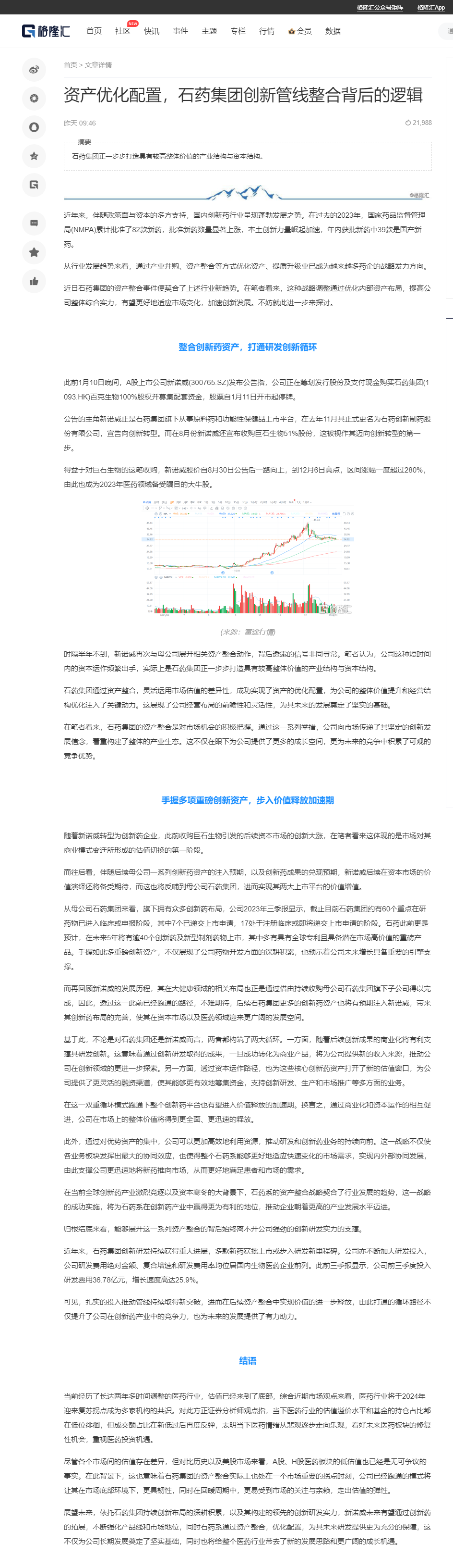 資產優化配置,石藥集團創新管線整合背后的邏輯