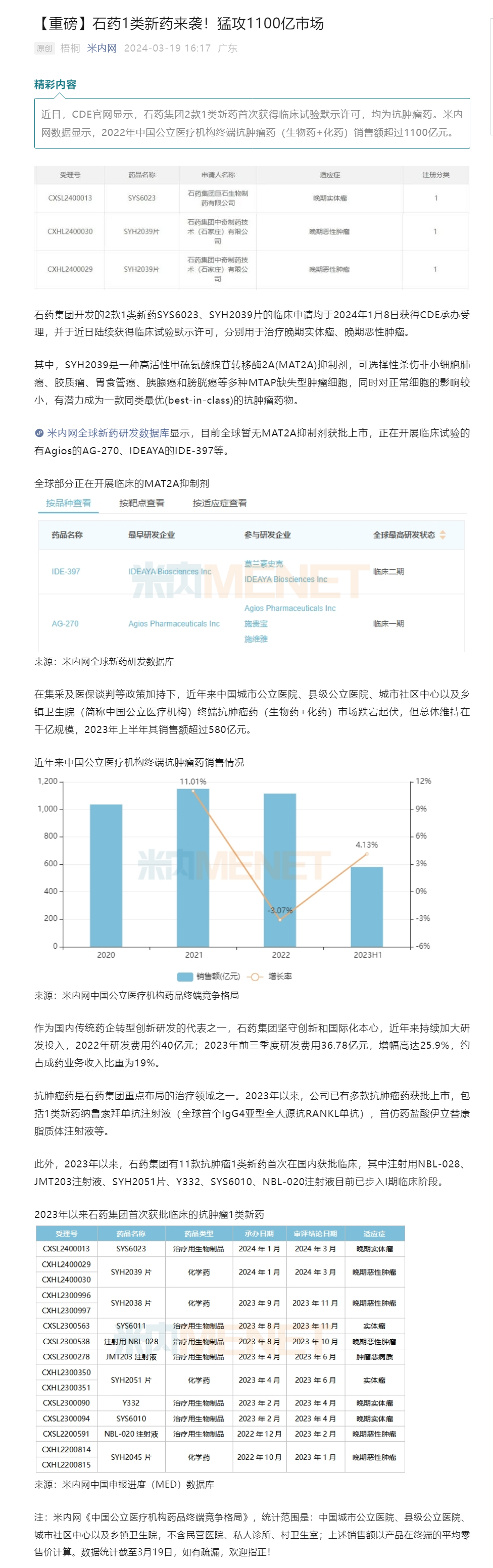石藥1類新藥來襲!猛攻1100億市場