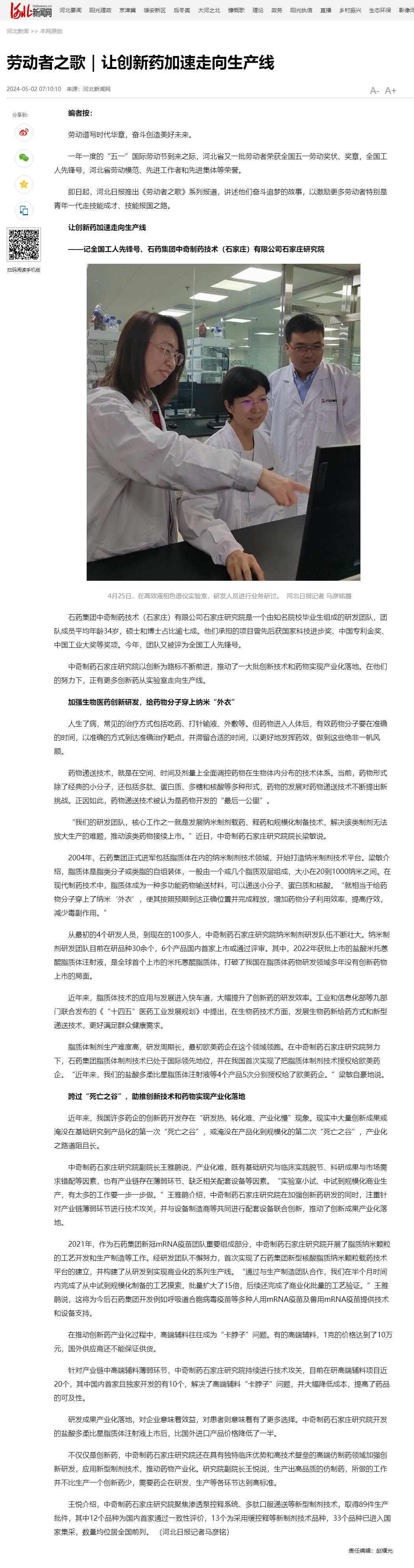 勞動(dòng)者之歌|讓創(chuàng)新藥加速走向生產(chǎn)線——記全國(guó)工人先鋒號(hào)、石藥集團(tuán)中奇制藥技術(shù)(石家莊)有限公司石家莊研究院